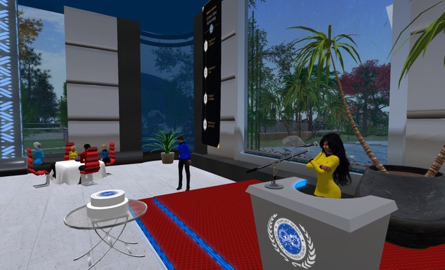 Admiral Keely Scrumptious conducted the Commissioning Ceremony in the Infinity Ballroom / Ceremony Hall on Lyonesse Colony.